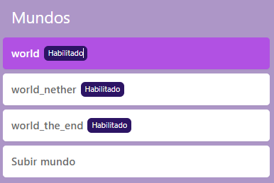 3. Saldrá un listado de los mundos del servidor, escoge el que se llama World (Esto cambia dependiendo de como tengas nombrado tu mundo en el servidor).