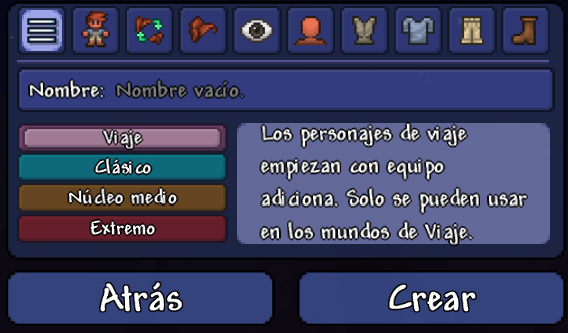 | Nota | Asegúrate de crear un personaje en modo Viaje (Journey Mode) y no en modo clásico, ya que algunos servidores requieren este tipo de personaje para poder entrar correctamente. |