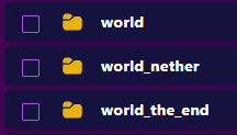 En servidores Forge es más probable que tengamos solo la carpeta world y dentro ya están los 3 mundos.